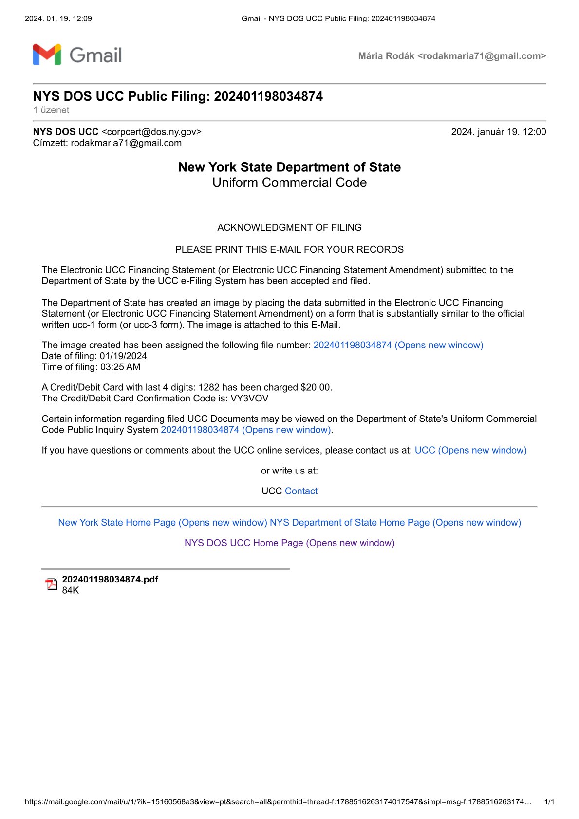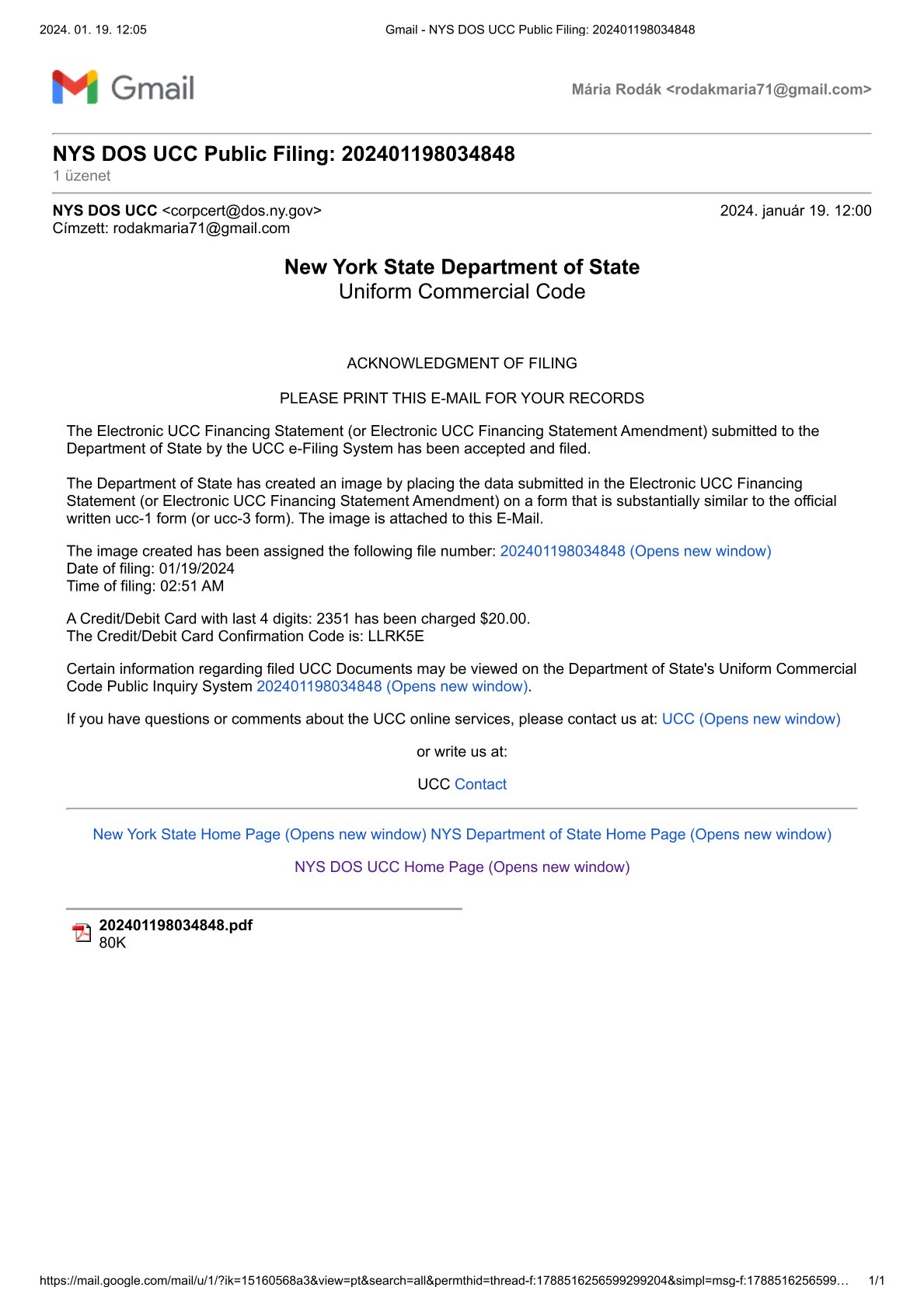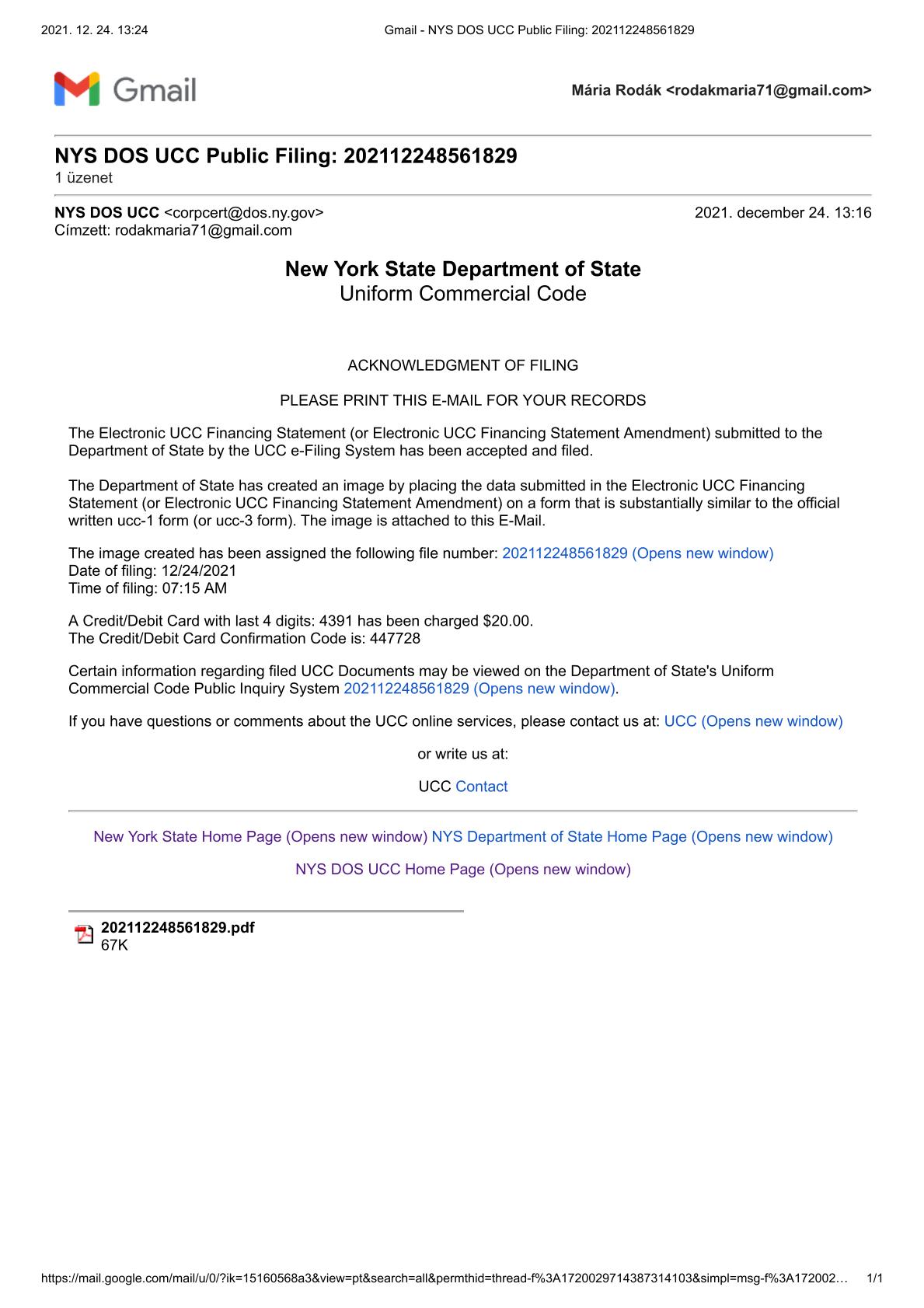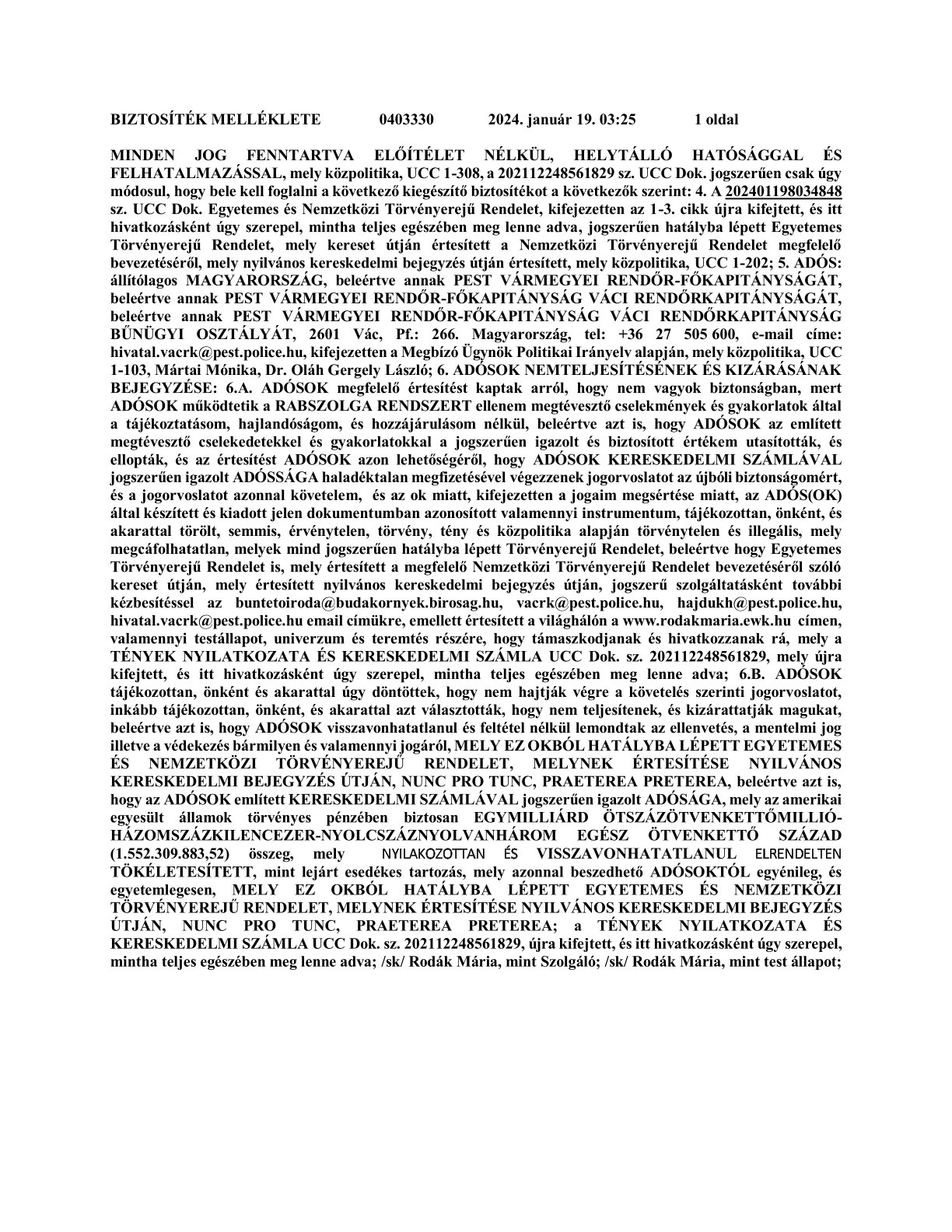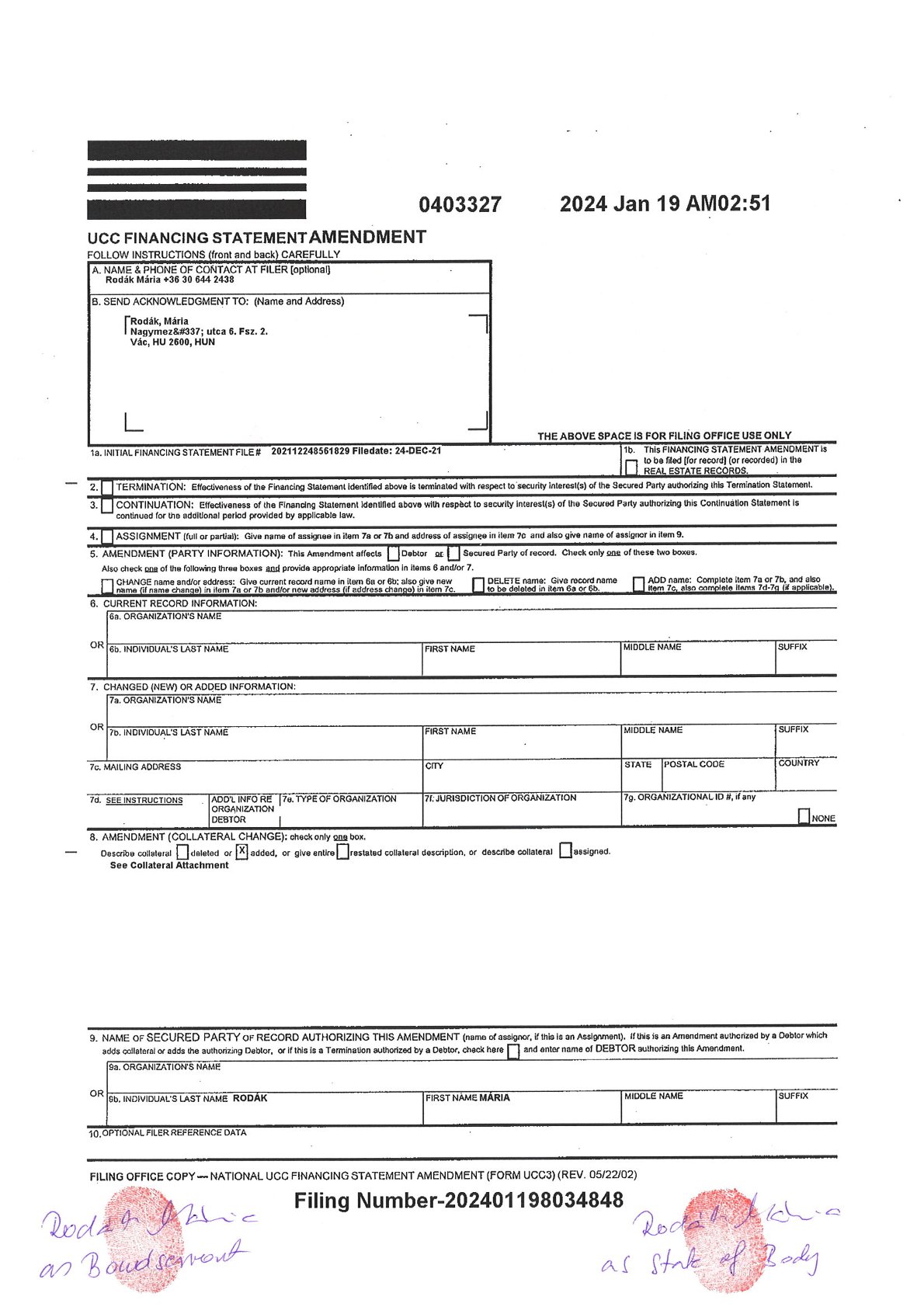 202112248561829 sz. UCC FINANCING STATEMENT(UCC FINANSZÍROZÁSI NYILATKOZAT) (UCC Dok.),és annak elfogadása ("irányadó jog”: 2012-296-1209-2 sz. WA UCC Dok.: „..Ez az egyetlen elfogadás, amit kap…”), és ezek magyar fordításai: